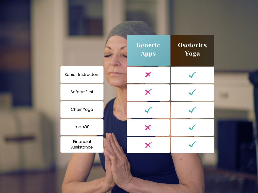 Oseterics is the only app that is senior-led and has been exclusively designed for older adults. You can also leverage Oseterics Yoga from your Mac and iPad apart from iPhone